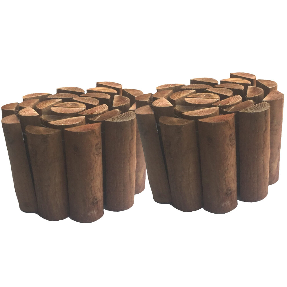2 X Log Border Edging Roll (Brown) 1.8 Metres Length x 15cm Height - Flower Beds, Lawns, Paths, Patio, Wooden Picket Fence Roll