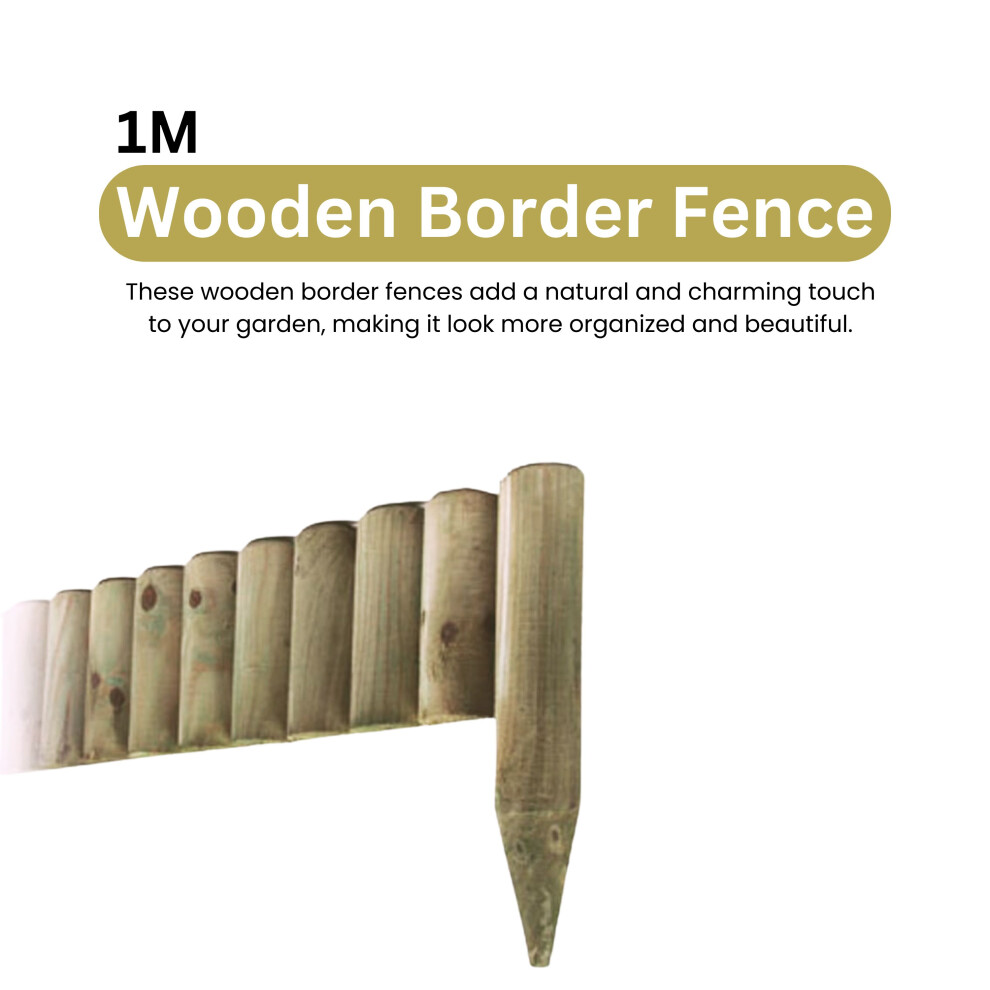 (1) 1M Wooden Fix Picket Log Border Fence, Garden Fence Panels Outdoor Lawn Edging