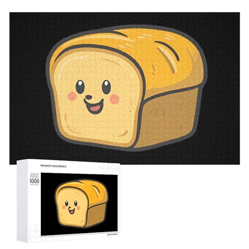 Cute Bread Funny Wooden Puzzle with Storage Box Adults Jigsaw Puzzles Challenge for Family Game Birthday Gift