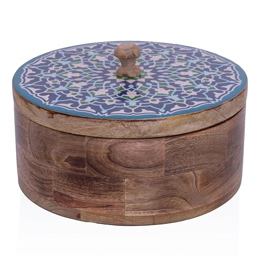 Handcrafted Wooden Mexican Tortilla Warmer Basket Indian Chapati Roti Bread Holder Box Pancake Keeper Serveware Hot Pot Casserole Dish With Lid Home Kitchen Dining Decor, Antique Brown, 23 x 7 cms
