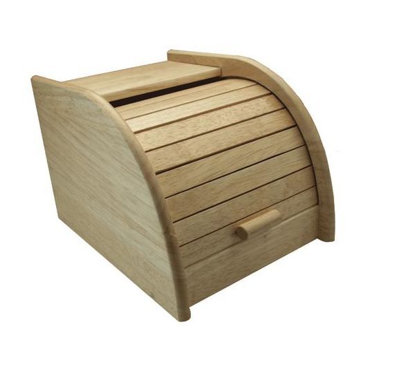 MINI BREAD BIN BOX BEECH HEVEA WOOD WOODEN ROLL UP TOP RUBBERWOOD CONTAINER 6818