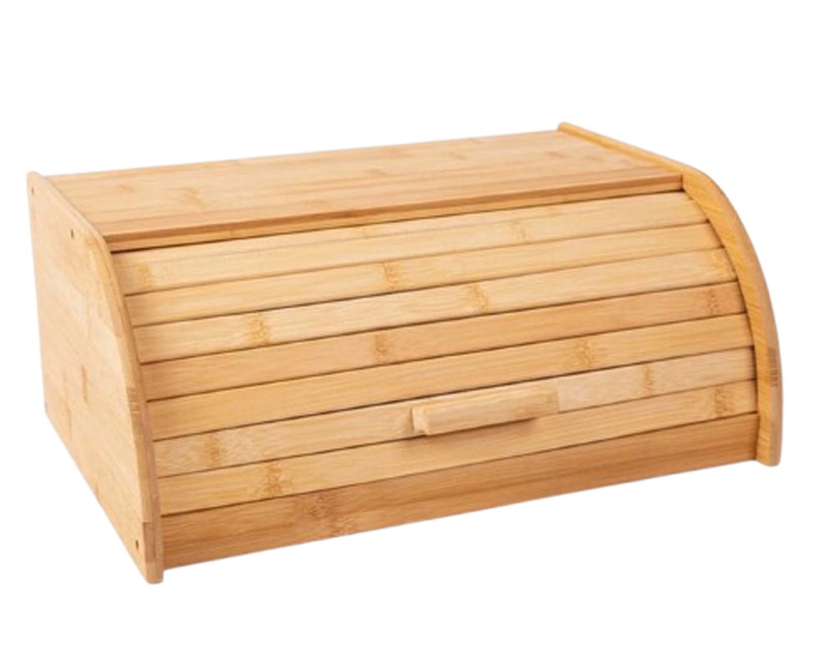 Bamboo Wooden Bread Bin Roll Top Lid Loaf Storage Box Kitchen Food Container