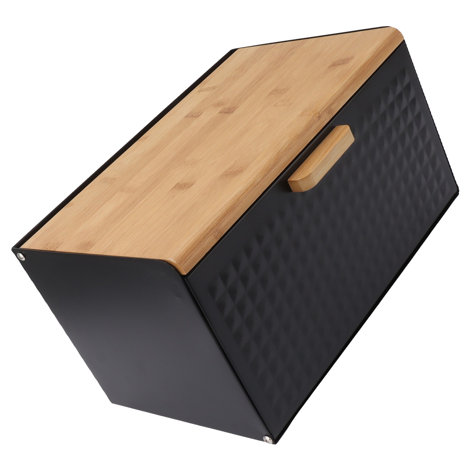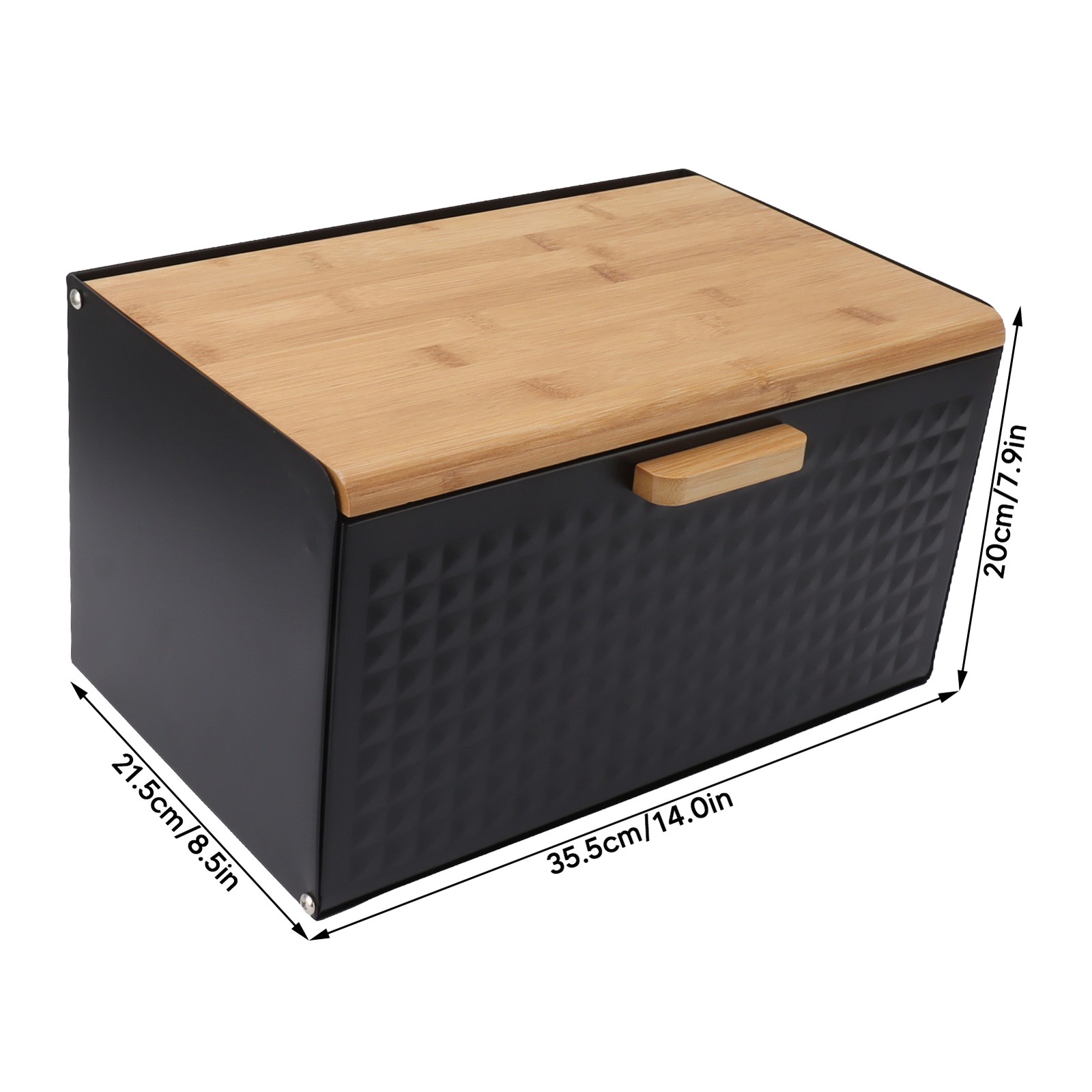 Black Wooden Bread Box Natural Vintage Heavy Duty Large Capacity Bread Stora NEW