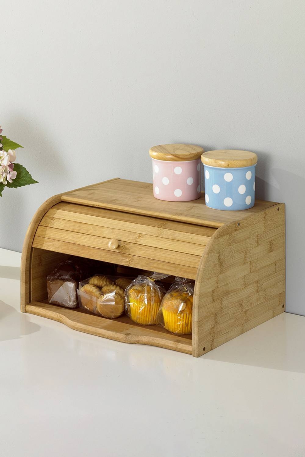 Bread Bin Bamboo Wooden Roll-Top Kitchen Food Storage Box Container | M&W