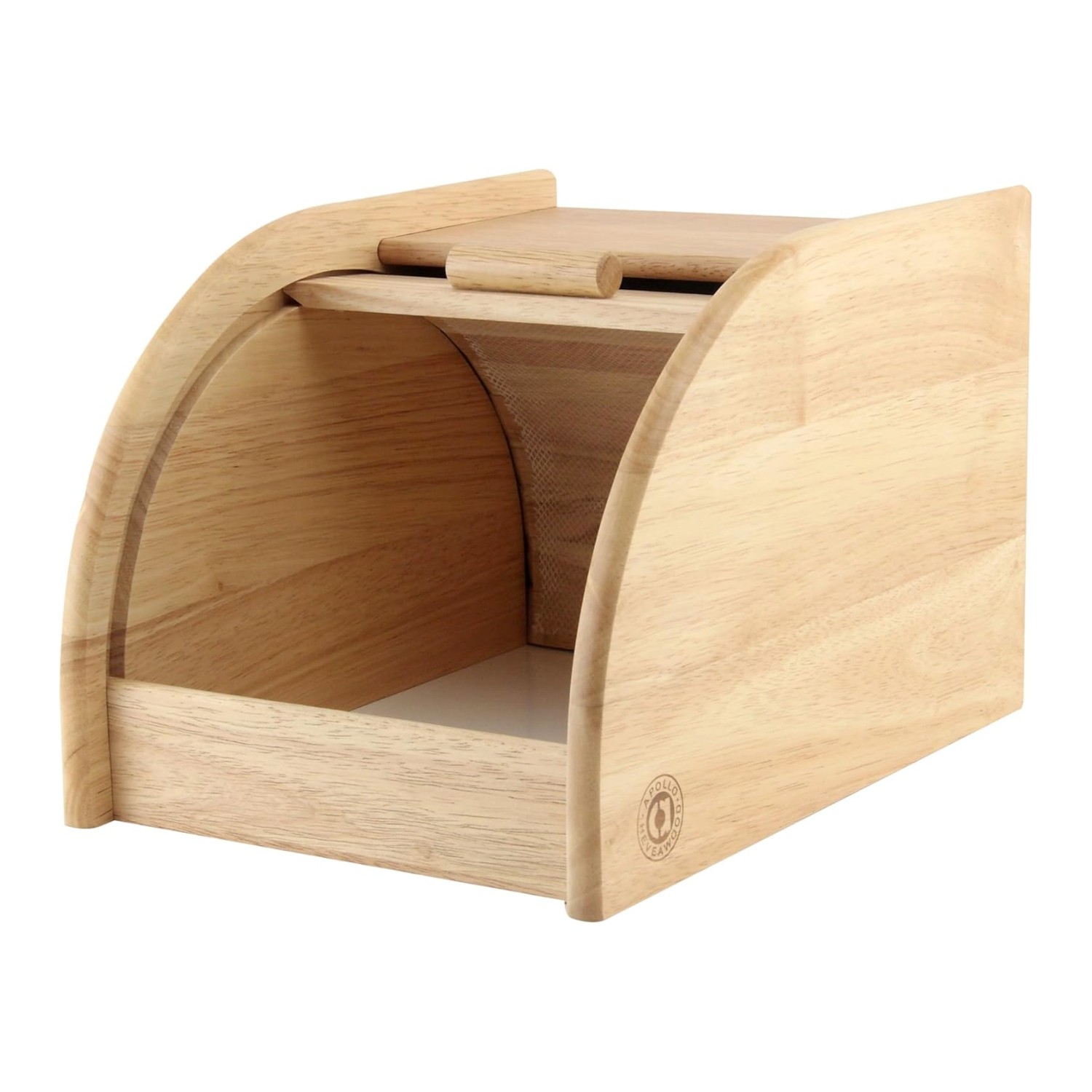 Apollo Rubberwood Roll Top Wooden Bread Bin Kitchen Top Food Loaf Storage Box