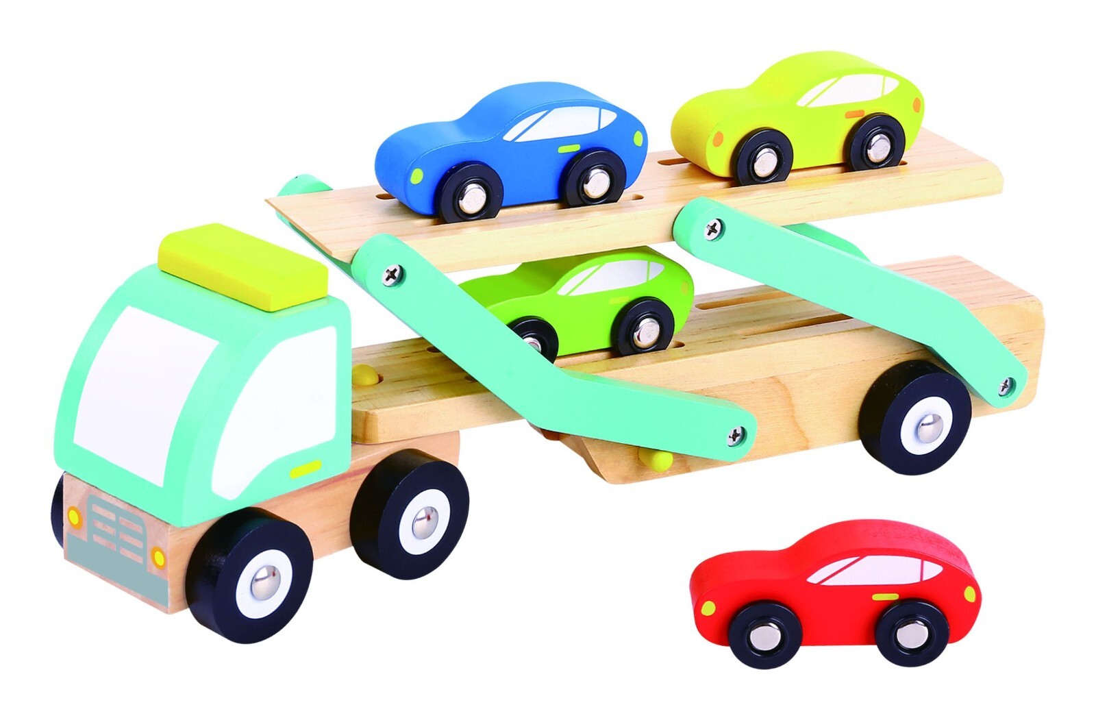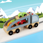Vanplay Wooden Toys Car Transporter Toy with 4 Cars 1 2 3 Year Old for Toddlers Gifts Olds Boys Girls