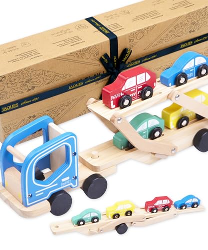 Jaques of London Wooden Toy Cars | Quality Toddler Toy Cars for Boys and Girls | Construction Car Toys for 2 3 4 Year Olds (Transporter Truck)