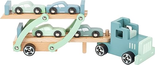 small foot 4222 Wooden car transporter, with movable loading ramp, detachable trailer and 4 cars