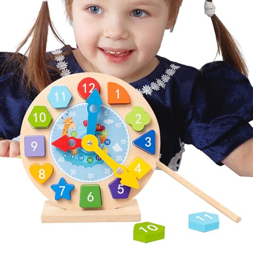 Wooden Shape Digital Clock|Safe Teaching Clocks Wooden Clock Toy|Learning Educational Toy With Bright Colors For 3 Year Old Boys And Girls|Sensory Toys For A Utism
