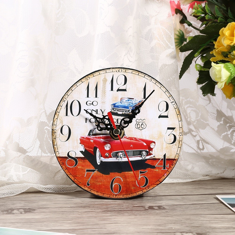 (6)Creative Antique Wall Clock Vintage Style Wooden Round Clocks Home H5