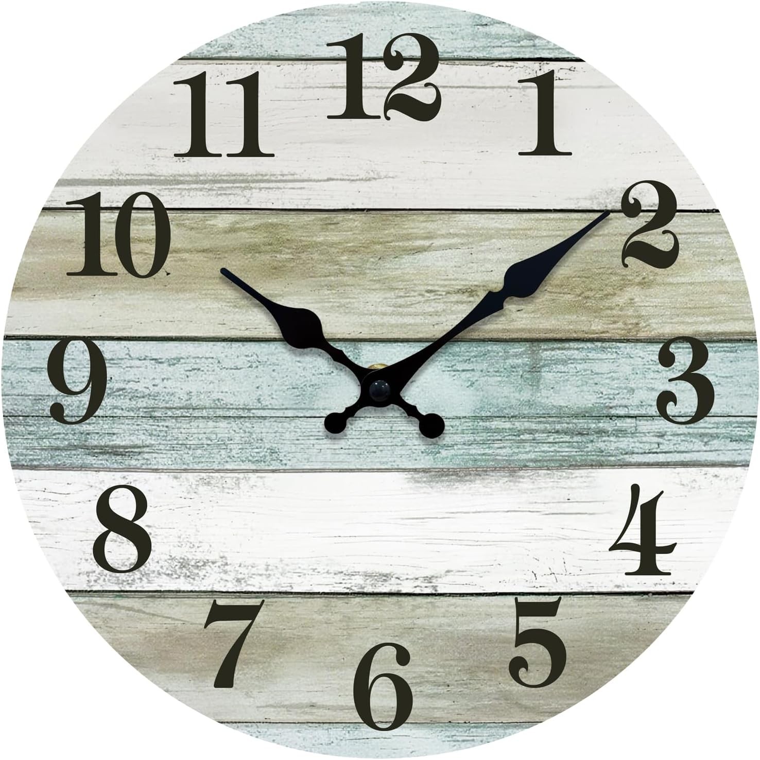 Plumeet Wall Clock, 12'' Frameless Wooden Wall Clocks with Silent Quartz Movement, Rustic Coastal Country Village Clock Decorative for Kitchen Bedroom Living Room, Blue
