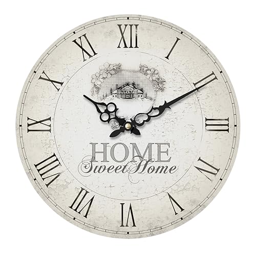 Wall Clock - 10 Inch Silent Non-Ticking Wooden Wall Clocks Battery Operated - Country Retro Rustic Style Decorative for Living Room Kitchen Home Bathroom Bedroom