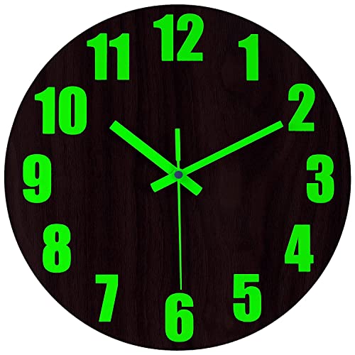 DIYZON Luminous Wall Clock, 12'' Wooden Wall Clocks with Silent Movement and Glowing up Function, No Glass Village Wall Clock Decorative Bedroom, Kitchen, Office, Battery Operated