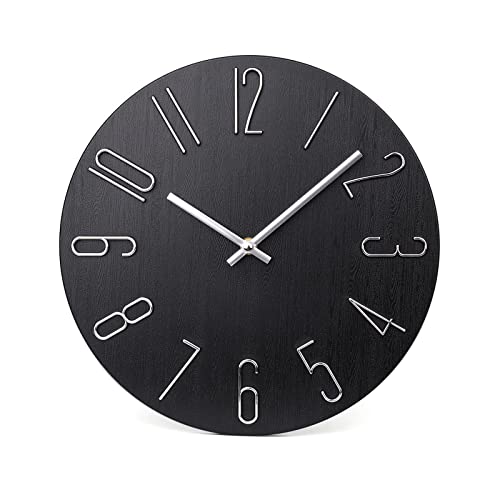 jomparis Wall Clock 12" Silent Non-Ticking Modern Style Wooden Wall Clocks Decorative for Office Home Bedroom School (Black)