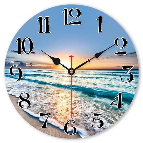 VIKMARI Kitchen Wall Clock - Home Decorative Wall Clock,14 Inch Silent Non-Ticking Quartz Battery Operated Clock, Easy to Read Round Arabic Numerals Ocean Wave Pattern Wooden Wall Clocks