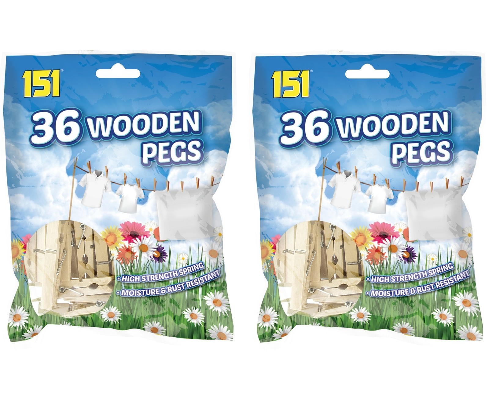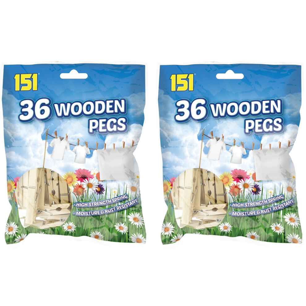 Traditional Wooden Clothes Pegs 2 x Bags Of 36 Laundry Washing Line Pegs 7cm
