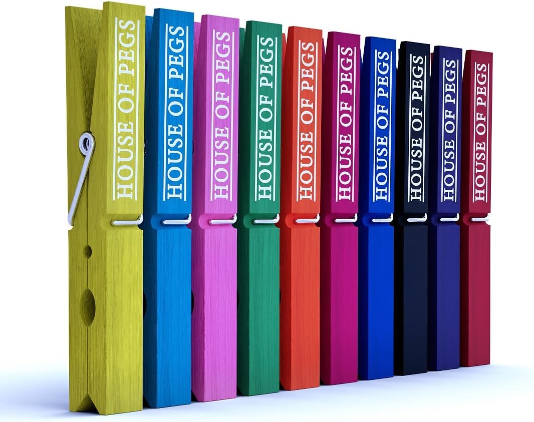 Wooden Clothes Pegs (100 Pack, 10 cm) – Multi-Coloured Birch Wood Clips for A