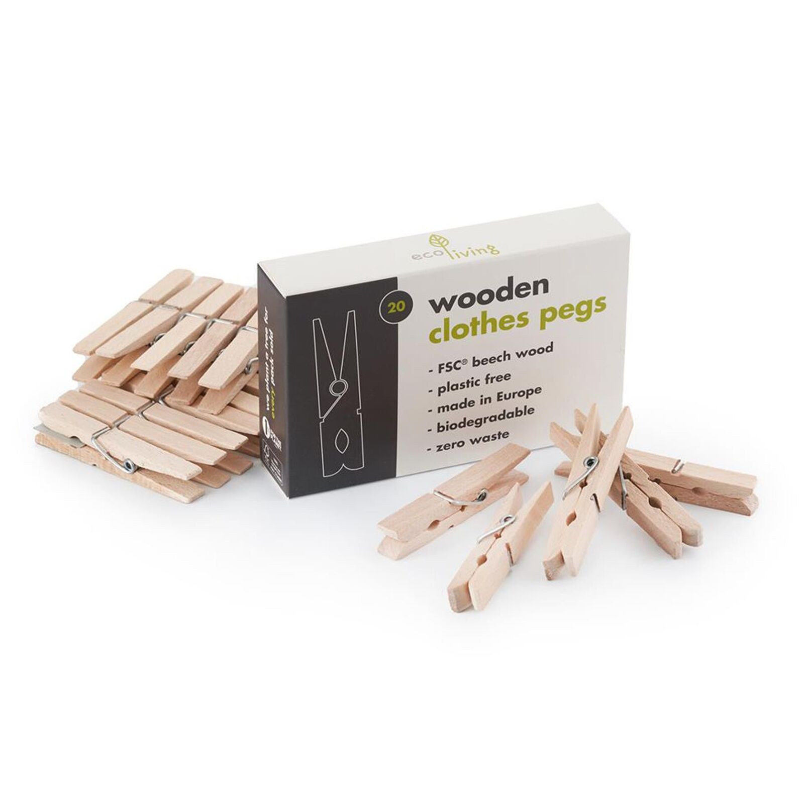 Eco Living Wooden Clothes Pegs - Laundry Organisation Gifts