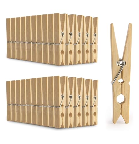 Bamboo Pegs - Pack of 100 | Strong Wooden Clothes Pegs for Washing Line | Wooden Peg for Arts Crafts & Hanging Photos | Strong Laundry Washing Pegs | Laundry Pegs (Medium)