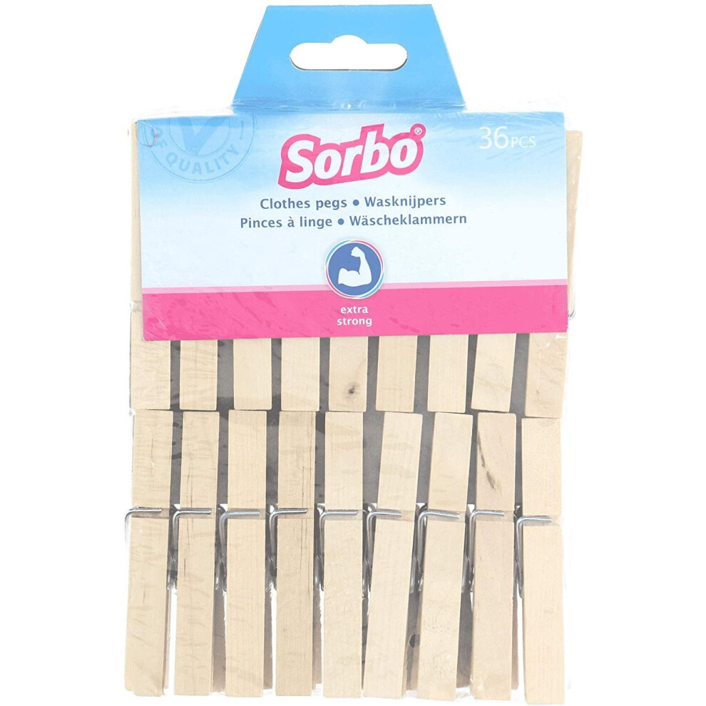 Sorbo Wooden Clothes Pegs, Wood, 36 Pcs