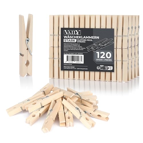 Vaily Wooden Clothes pegs - Strong Pegs with firm grip for laundry, washing line, handicrafts and decoration- Indoor and Outdoor Use - 120 pieces