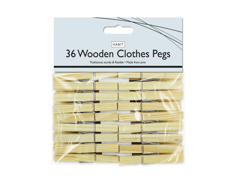 SupaHome Wooden Hardwood Clothes Pegs Pack Of 36