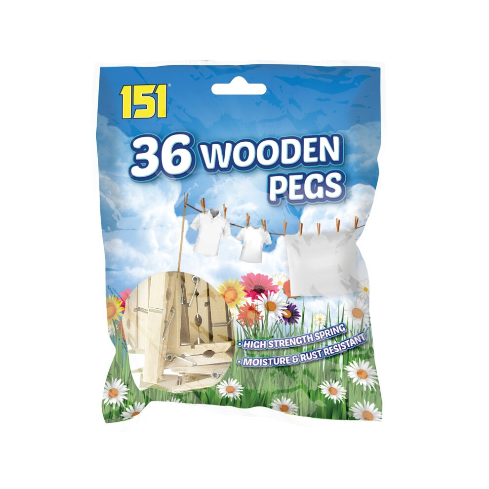 Traditional Wooden Clothes Pegs Bag Of 36 Laundry Washing Line Pegs 7cm x 1.8cm