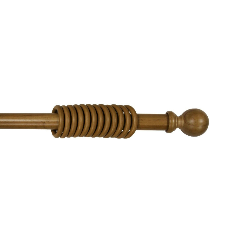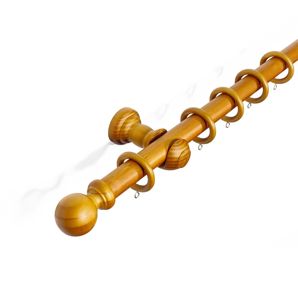 (240 cm, Honey Oak) 33 mm Ribbed Ball Wood Curtain Poles Fixed Length Premium Quality Curtain Pole Wooden Beautiful Design Rubber Wooden Finials