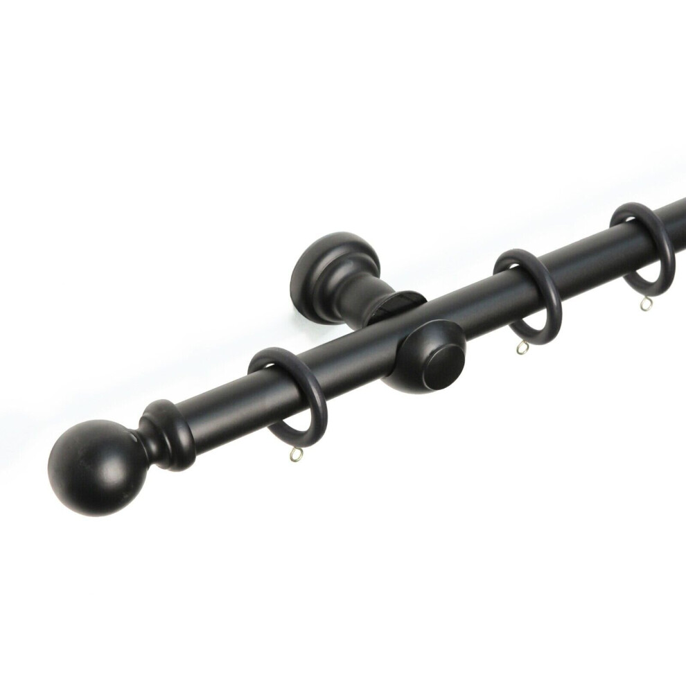 (200 cm, Black Traditional Ball) Lister Cartwright 28 mm Eyelet Wooden Curtain Pole Set Fixed Length Poles Classic & Durable Design with Finials