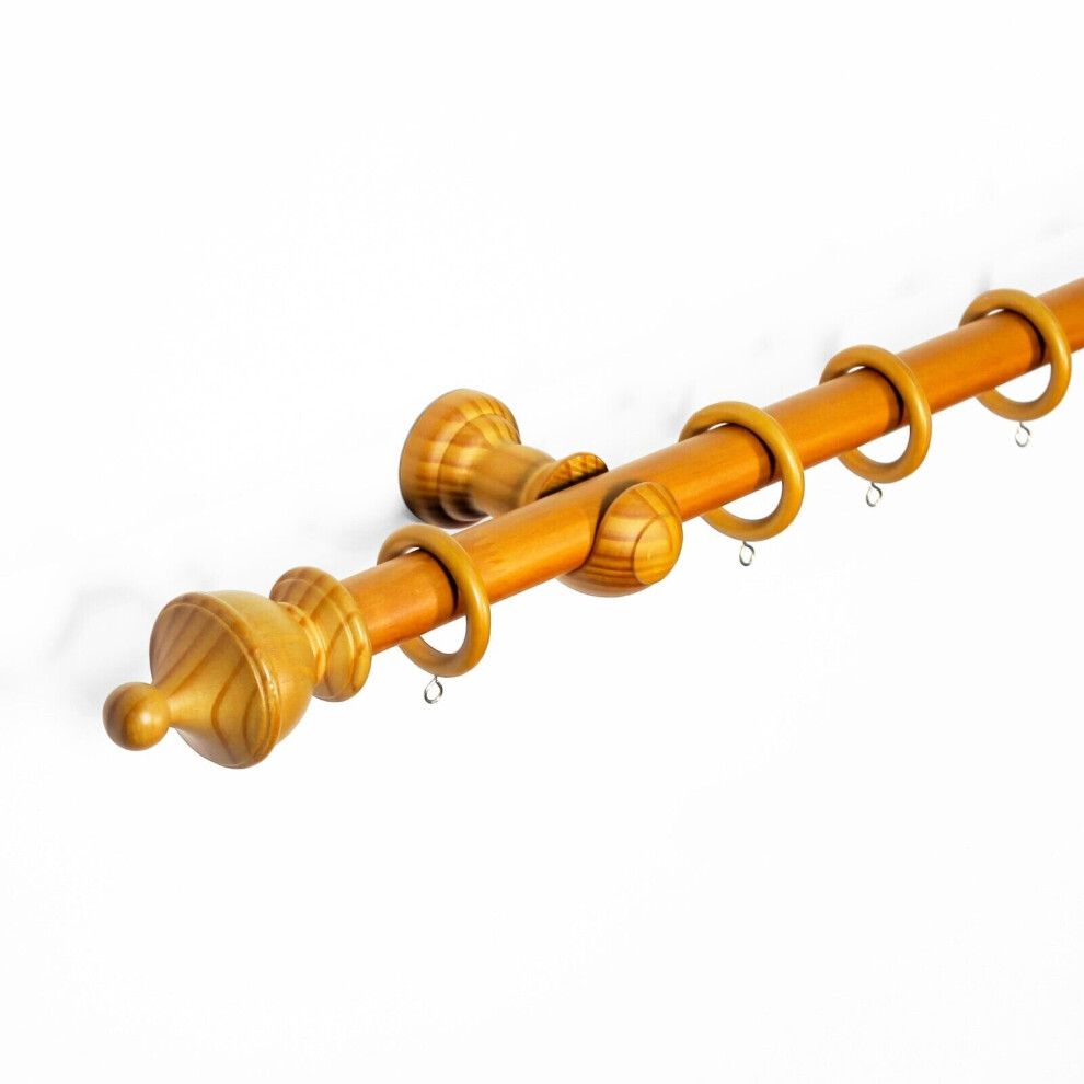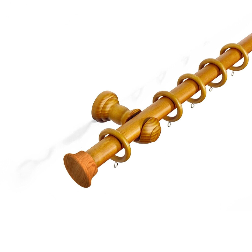 (300 cm, Honey Oak) 33 mm Ribbed Ball Wood Curtain Poles Fixed Length Premium Quality Curtain Pole Wooden Beautiful Design Rubber Wooden Finials