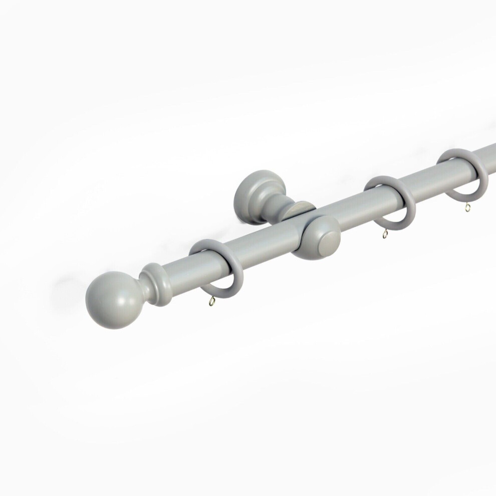 (240 cm, Ash) 33 mm Ribbed Ball Wood Curtain Poles Fixed Length Premium Quality Curtain Pole Wooden Beautiful Design Rubber Wooden Finials