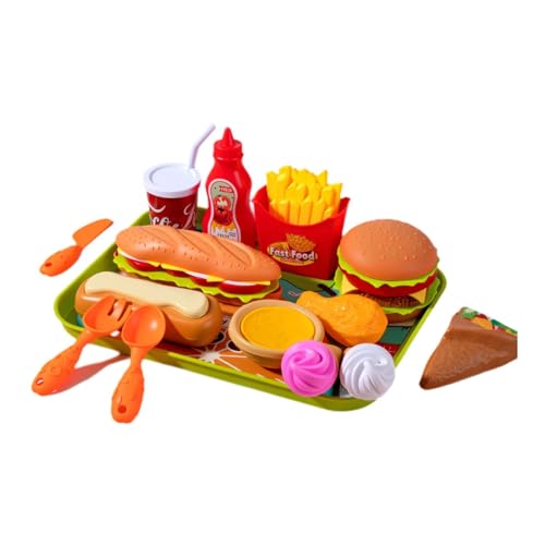 Kids Cutting Play Food Set - 20+ Piece Pretend Kitchen Toy with Wooden Knife & Cutting Board- Hamburger