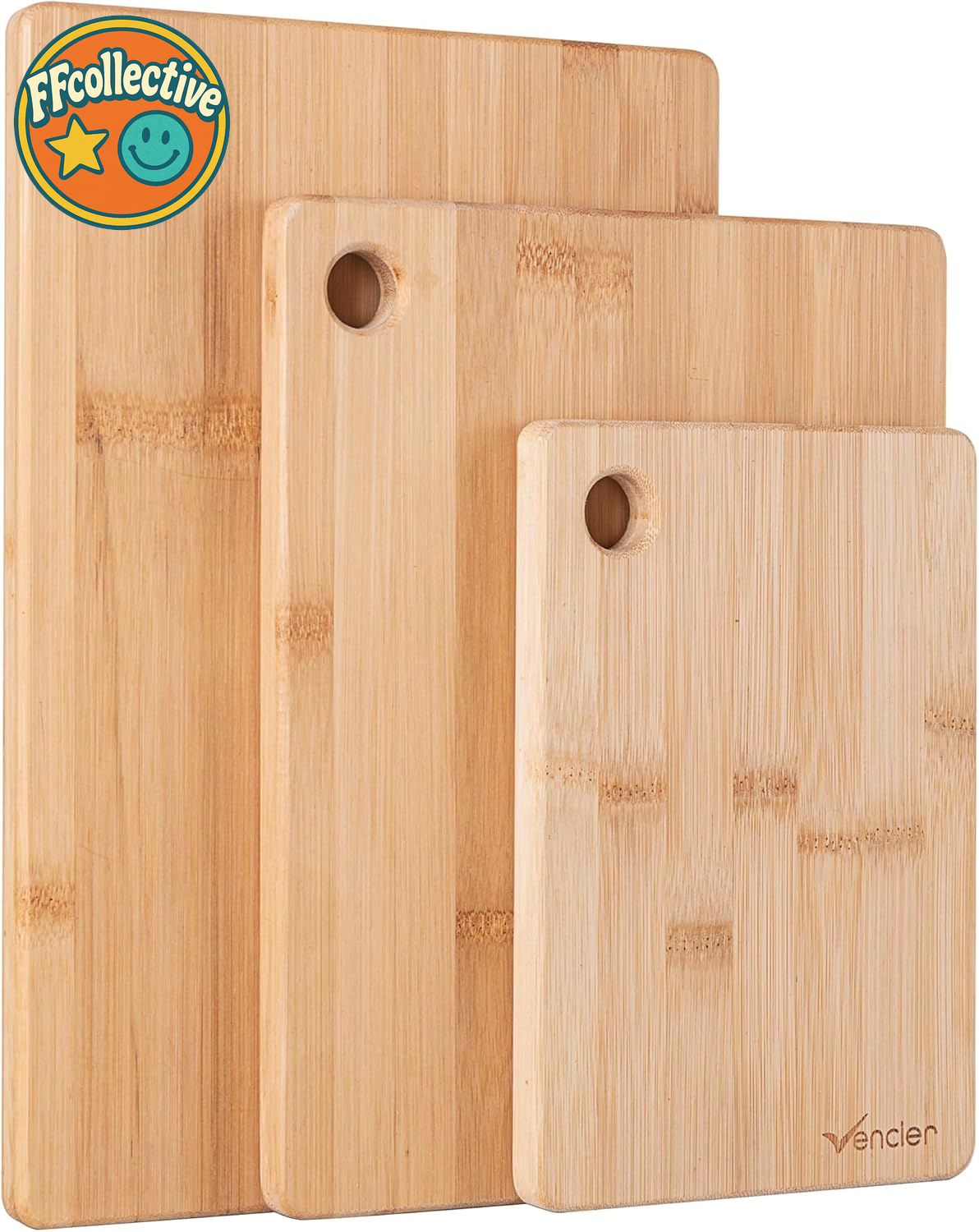 Vencier Thick Wooden Cutting Boards Set - Perfect for Meat Carving, Vegetable and Bread Cutting - Bamboo Chopping Board Ensemble (3pc Set)