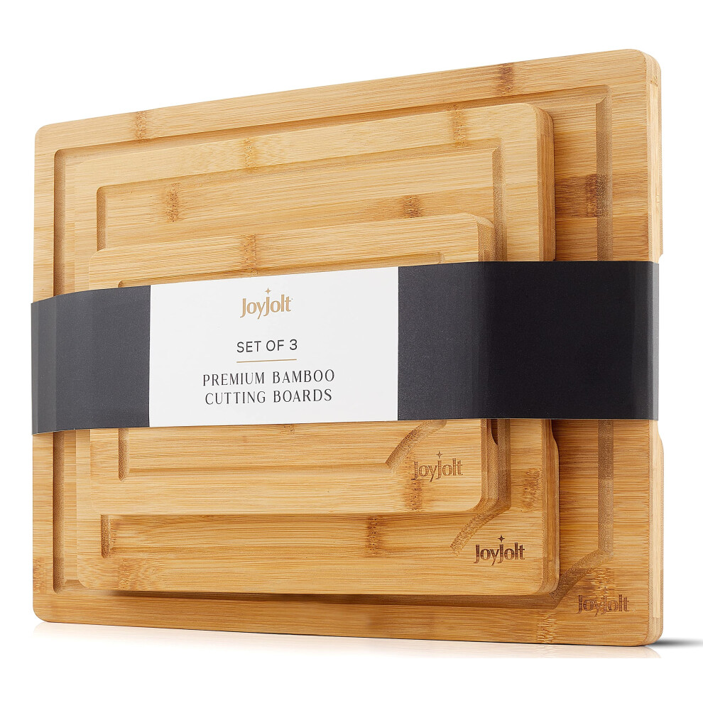 JoyJolt Bamboo Cutting Board Set Wooden Cutting Boards for Kitchen. Large and Small Wooden Cutting Board Set; Serving Cheese Board Bread Board or Ch