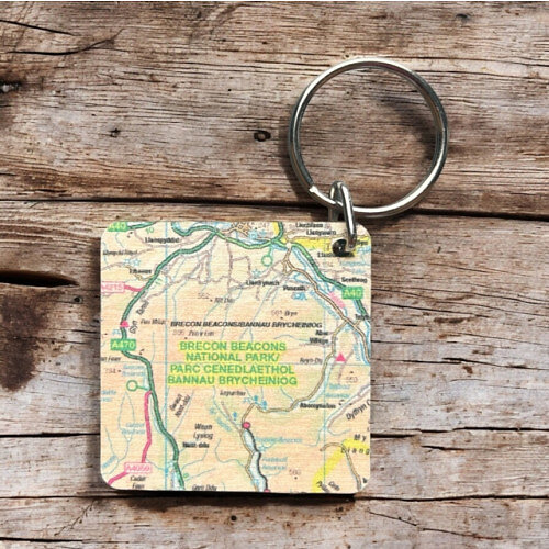 OS Map Wooden Square Key-ring Brecon Beacons National Park