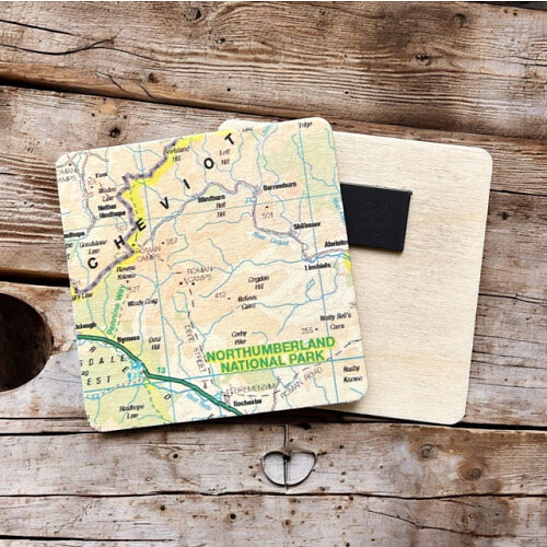 OS Map Wooden Square Magnet Northumberland National Park