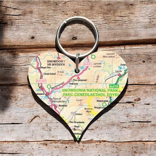 OS Map Wooden Heart Key-ring Snowdonia National Park