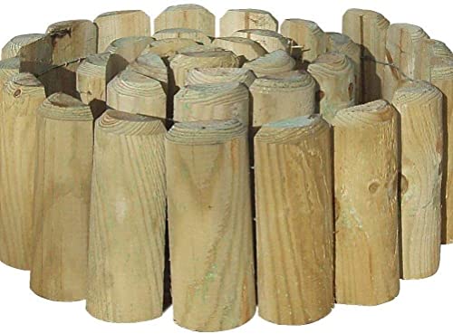 Wooden Log Panel Roll Garden Border Edging Fence Lawen Pressure Treated Fixed Picket Flower Fencing 15cm High Lawn Edging (set of 8 - length 320 cm (10 ft))