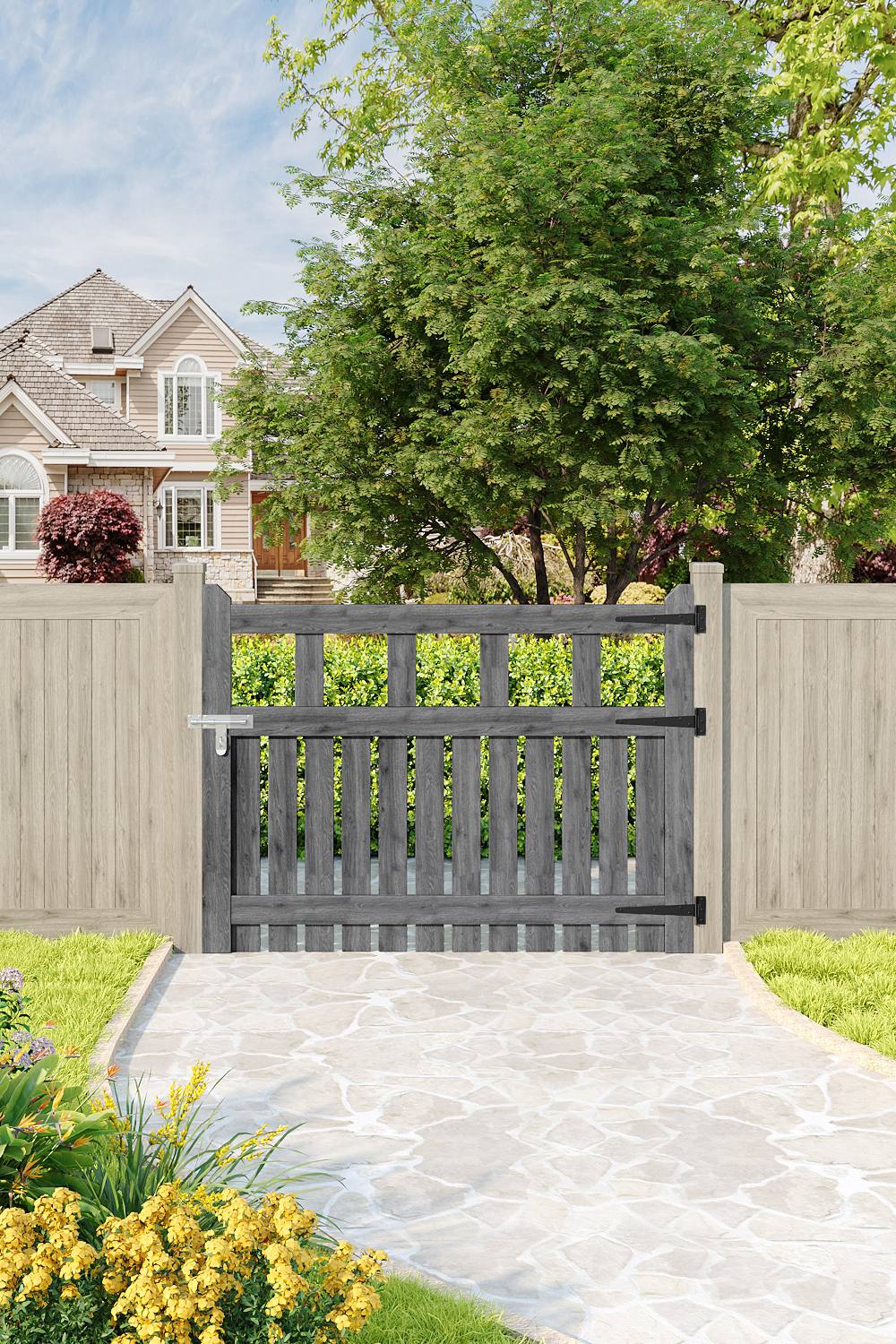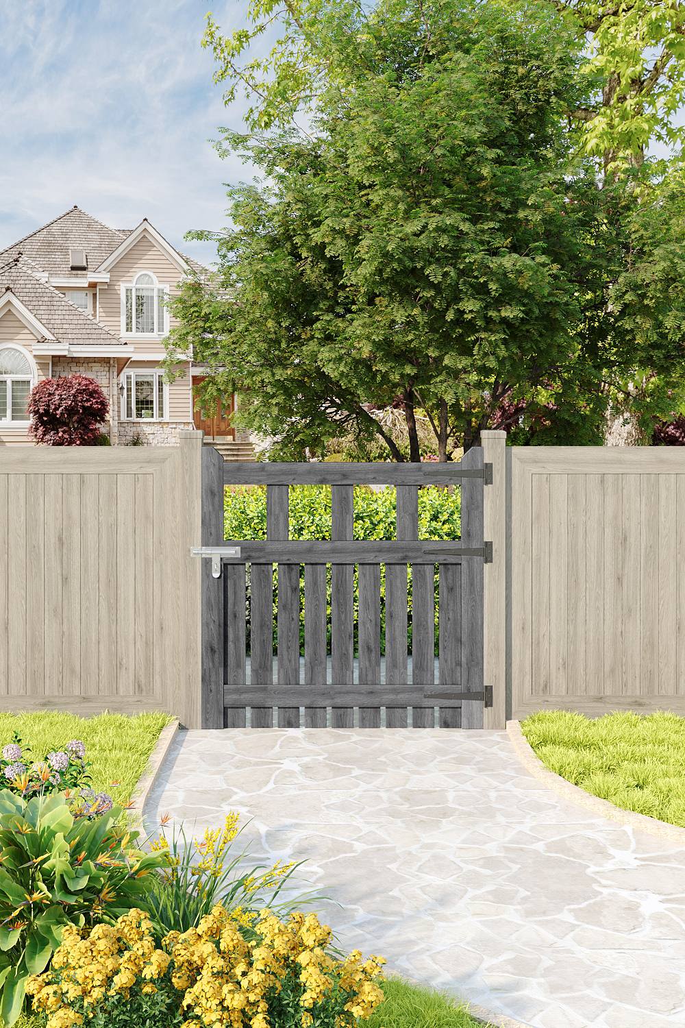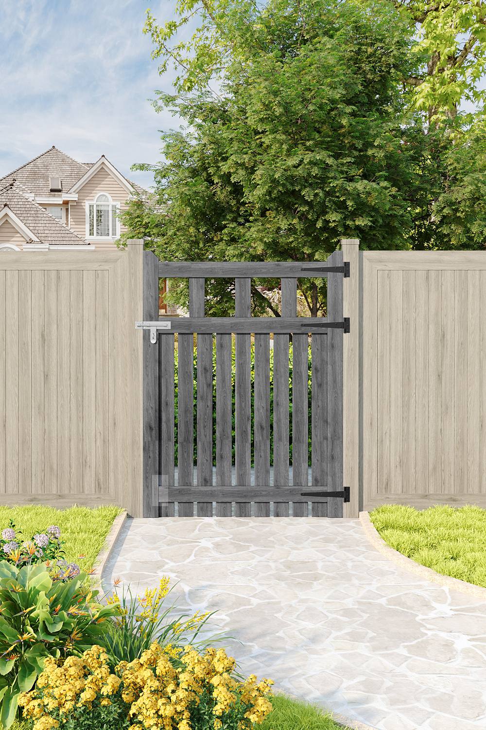 Living and Home 90x90cm Outdoor Wooden Grey Garden Gate Waterproof Treatment Border Fence Door