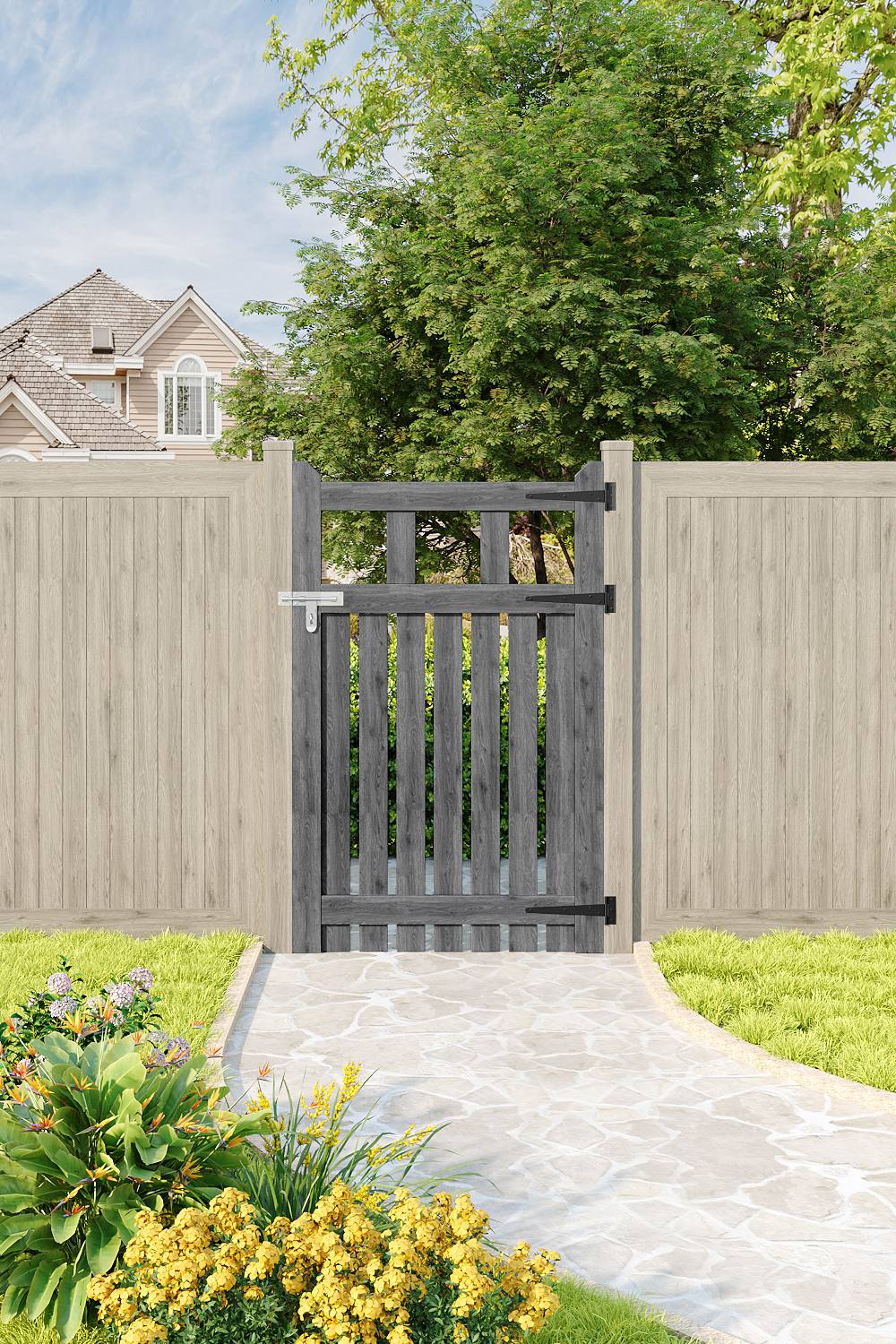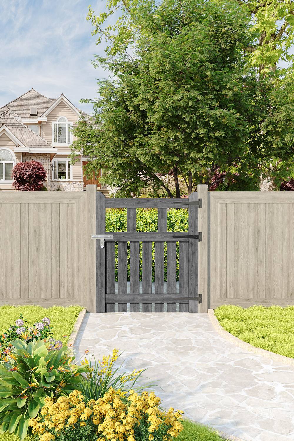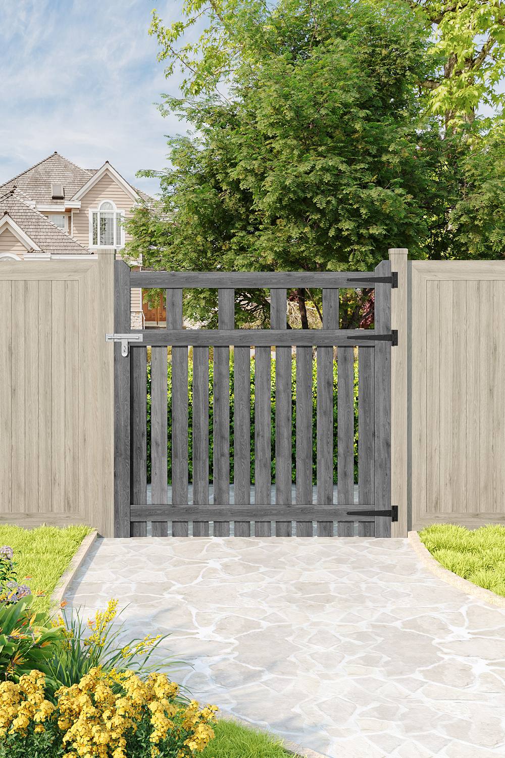 Living and Home 90x90cm Outdoor Wooden Grey Garden Gate Waterproof Treatment Border Fence Door