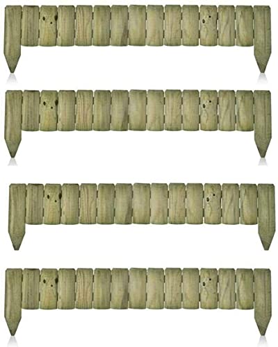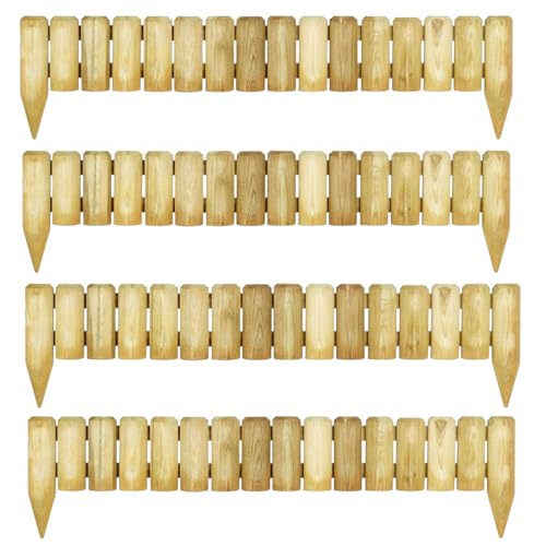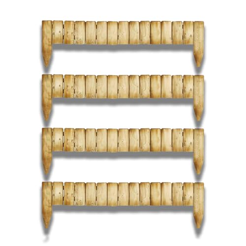 (Pack of 4) 1M Log Wooden Fixed Picket Log Border Fence, Natural Wooden Border Edging, Wooden Edging Fence, Garden fence, Wooden border Fence Roll for Flower Beds Lawns Paths