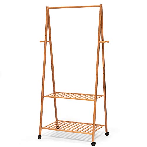 Large Bamboo Clothes Rail Wooden Garment Rack Trolley for Balcony Terrace Garden