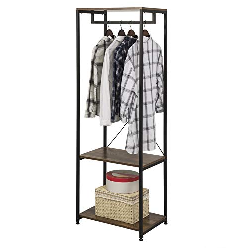 unho Industrial Clothes Rail Rack, Heavy Duty Garment Rack Wardrobe with 3 Tier Storage Shelves Metal and Wooden Coat Stand with Shoe Rack for Bedroom Hallway Entryway Rustic Black and Brown
