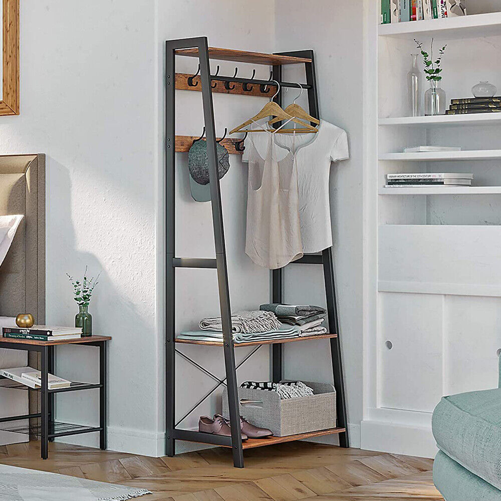 Rustic Wooden Clothes Garment Rail Open Hanging Display Shelf Shoe Rack Entryway