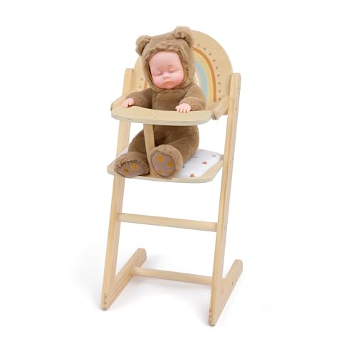 Giant bean Wooden Dolls High Chair with Feeding Set – Pretend Play Feeding Seat for Dolls, Includes Bib, Utensils, Bottles & Plate – Toddler Role Play Toy Furniture for 18 Inch Baby Dolls