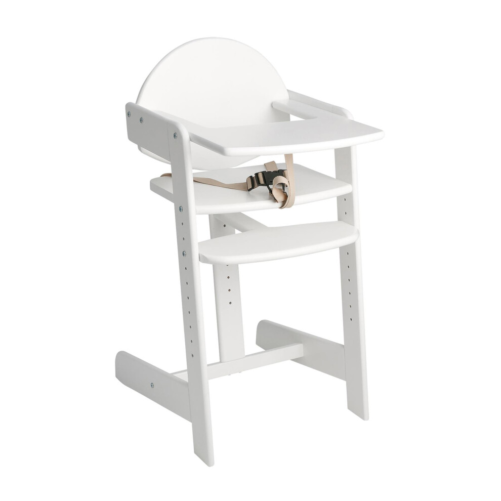 hauck Alpha+, White - Wooden High Chair 6 Months to Adult Sustainable FSC® Certified Beechwood Toddler Feeding and Entertainment Chair, Inclusive 5-Point Harness Bumper Bar Crotch Strap