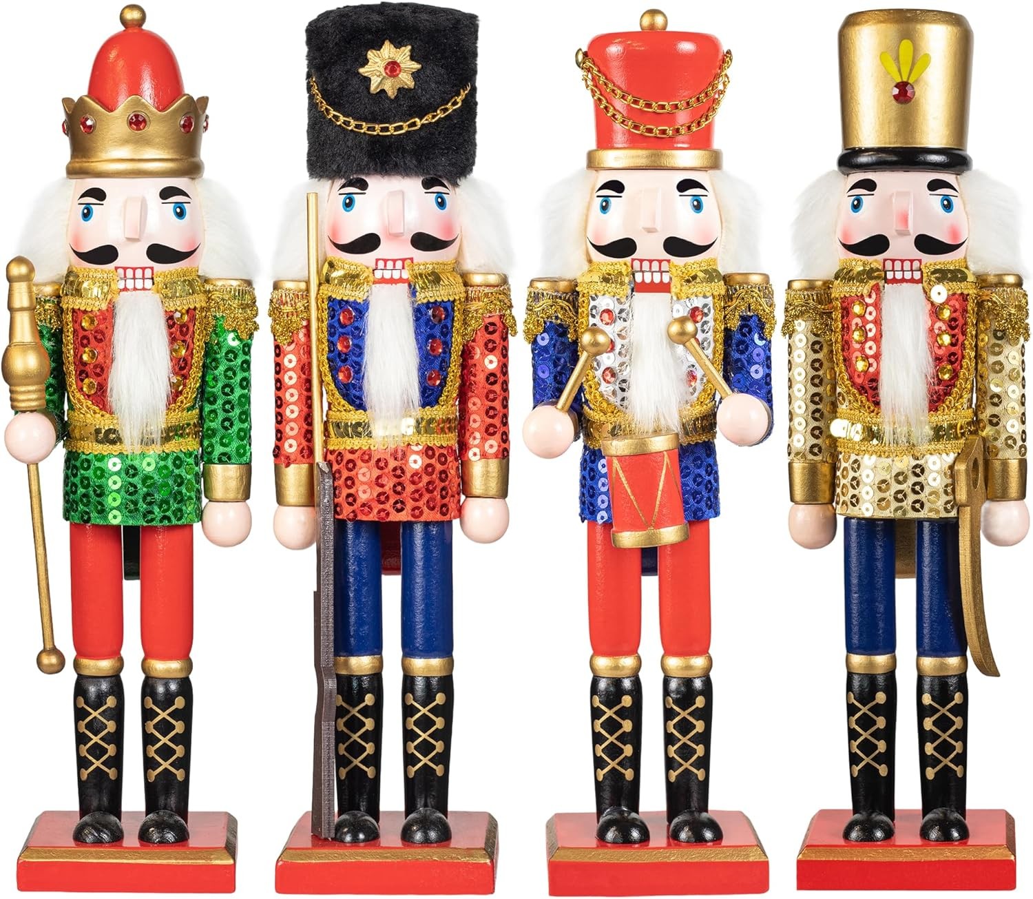 KI Store 4pcs Christmas Nutcracker Soldier Figurines 30cm Wooden Nutcracker Sol
