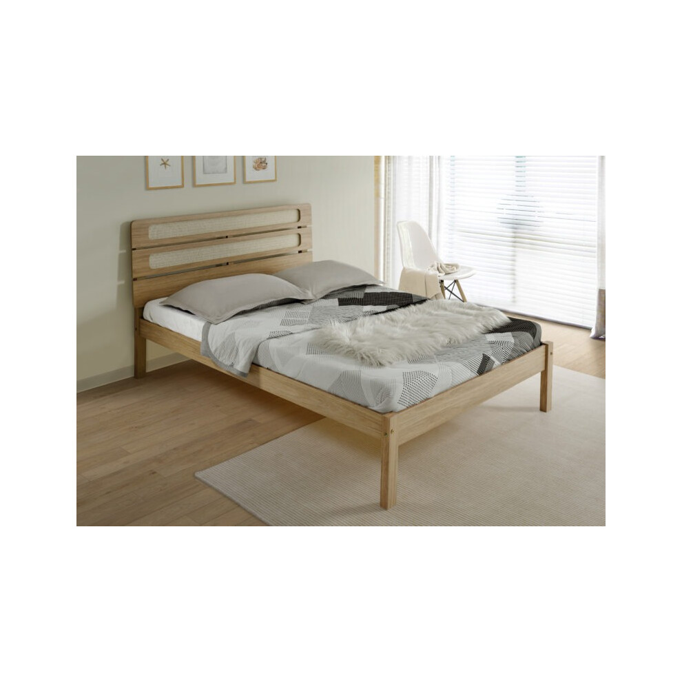 (5ft Kingsize) Wooden Bed Frames, Santana Light Oak/Rattan Effect