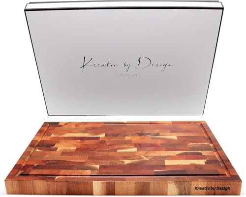 KREATIV BY DESIGN Grain Acacia Wooden Chopping Board 42 x 27.4 x 3cm with Juice Groove | Large Thick End Knife-Friendly Butchers Block | Wood Chopping Board for Meat, Cutting Vegetables and Cheese