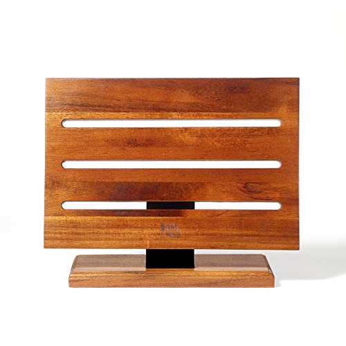 MITSUMOTO SAKARI Japanese Acacia Wood Storage Knife Block,Enhanced Double-Sided Magnetic Strip Wooden Knife Holder, Kitchen Magnetic Knife Holder